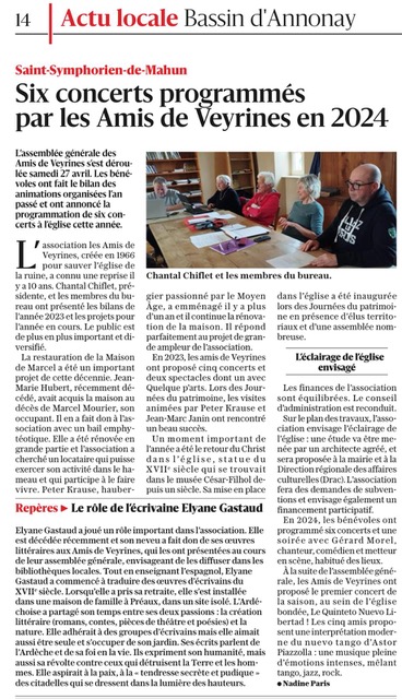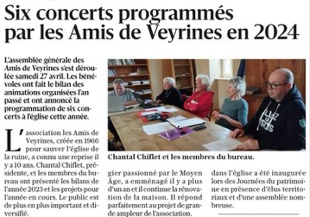 – le quotidien Le Dauphiné a notamment mis en avant la programmation culturelle des Amis de Veyrines pour 2024.