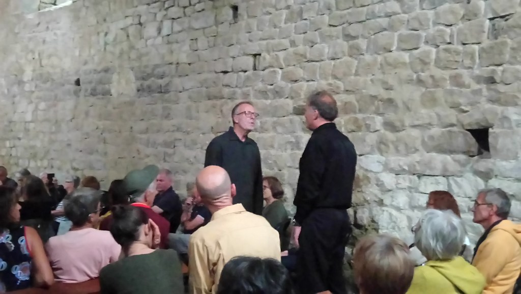 Ils ont reçu après 21 heures la visite de vacanciers creusois désireux d’assister au concert avec plus de trois heures de retard ! Les chanteurs ont alors interprété deux oeuvres pour leur donner un aperçu de leur art.