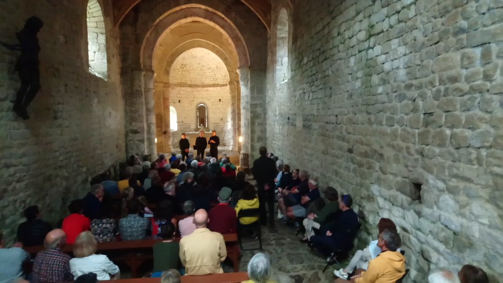 Pour chaque oeuvre l’un des chanteurs d’Asculta nous en a fait une petite présentation avec ses caractéristiques (langue, thème, vocation profane ou sacrée). Le public a ainsi appris qu’en Corse on ne parle pas de chant polyphonique mais de chant à trois voix ou « Cantu in paghjella ». Ce qui se traduit par « chanter en paghjella » ou « chanter une paghjella ».