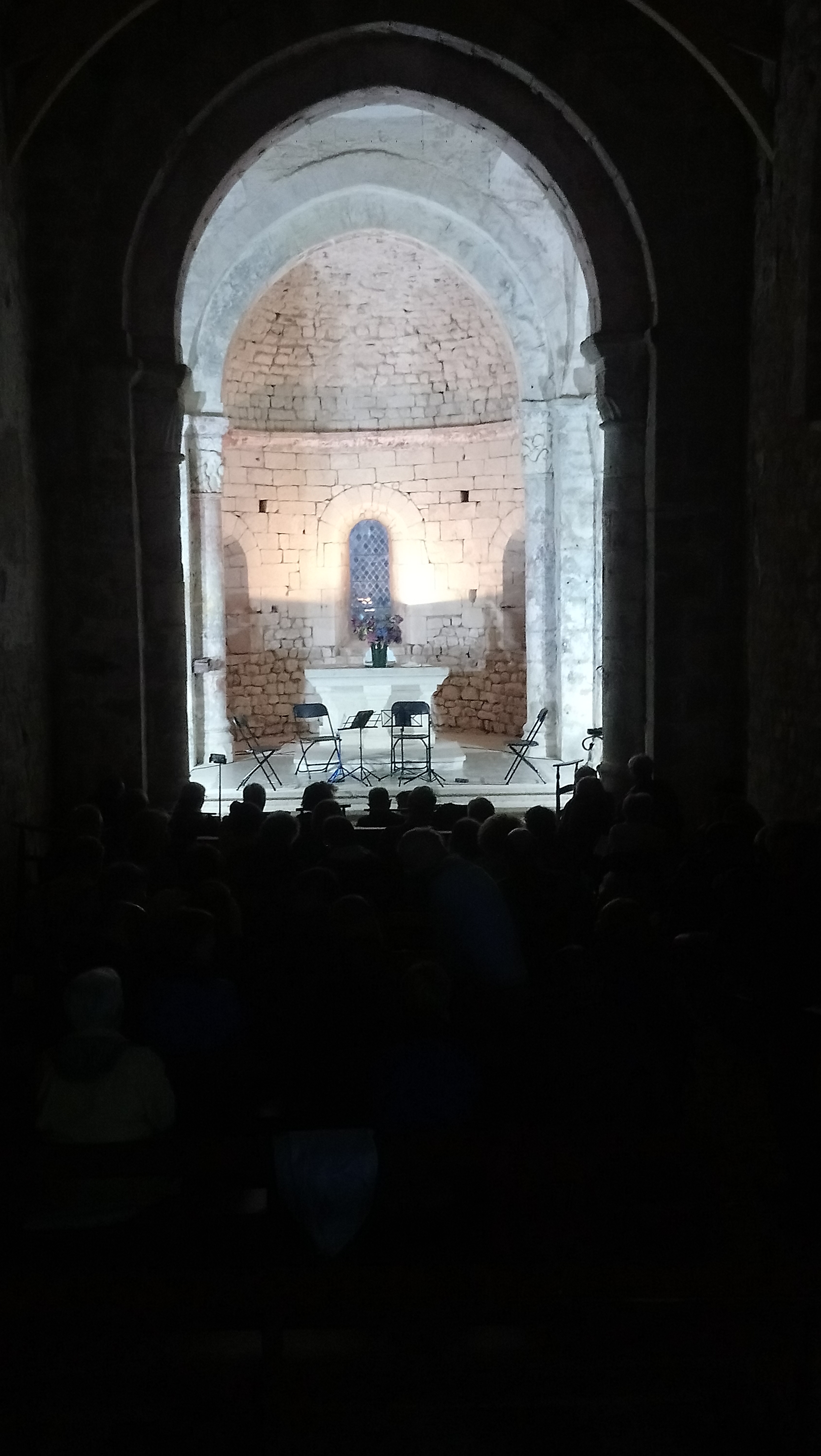 Malgré un ciel très bas et les averses orageuses prévues pour la soirée, de nombreuses personnes (environ 70) avaient fait le déplacement jusqu’à l’église de Veyrines pour assister au nouveau concert du Quatuor Amoroso.