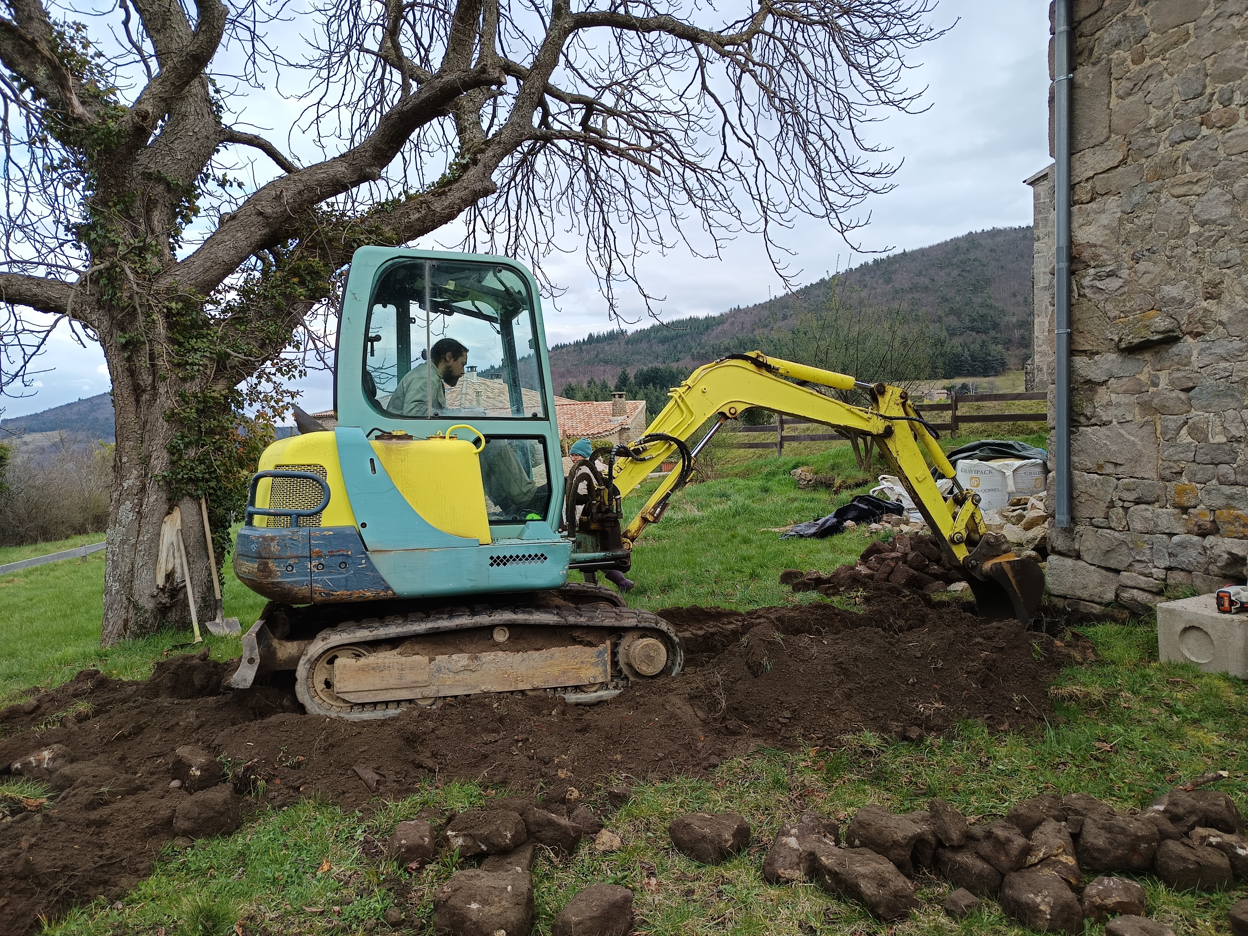 Les opérations de creusement et de remblaiement des tranchées ont été réalisées de manière très efficace par Clément Ferrari, avec sa mini-pelle mécanique.