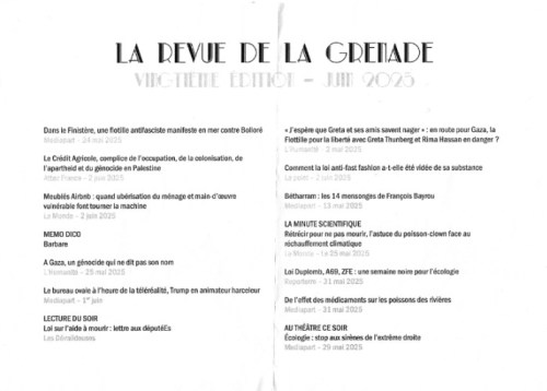 Le spectacle était composé de treize saynètes basées sur des articles d’actualité internationale ou nationale, politique ou économique, scientifique ou médiatique… traités de manière humoristique voire burlesque.