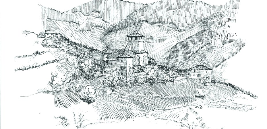 L‘église de Veyrines vue depuis la Maison de Marcel par © Béatrice Ponchon