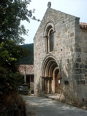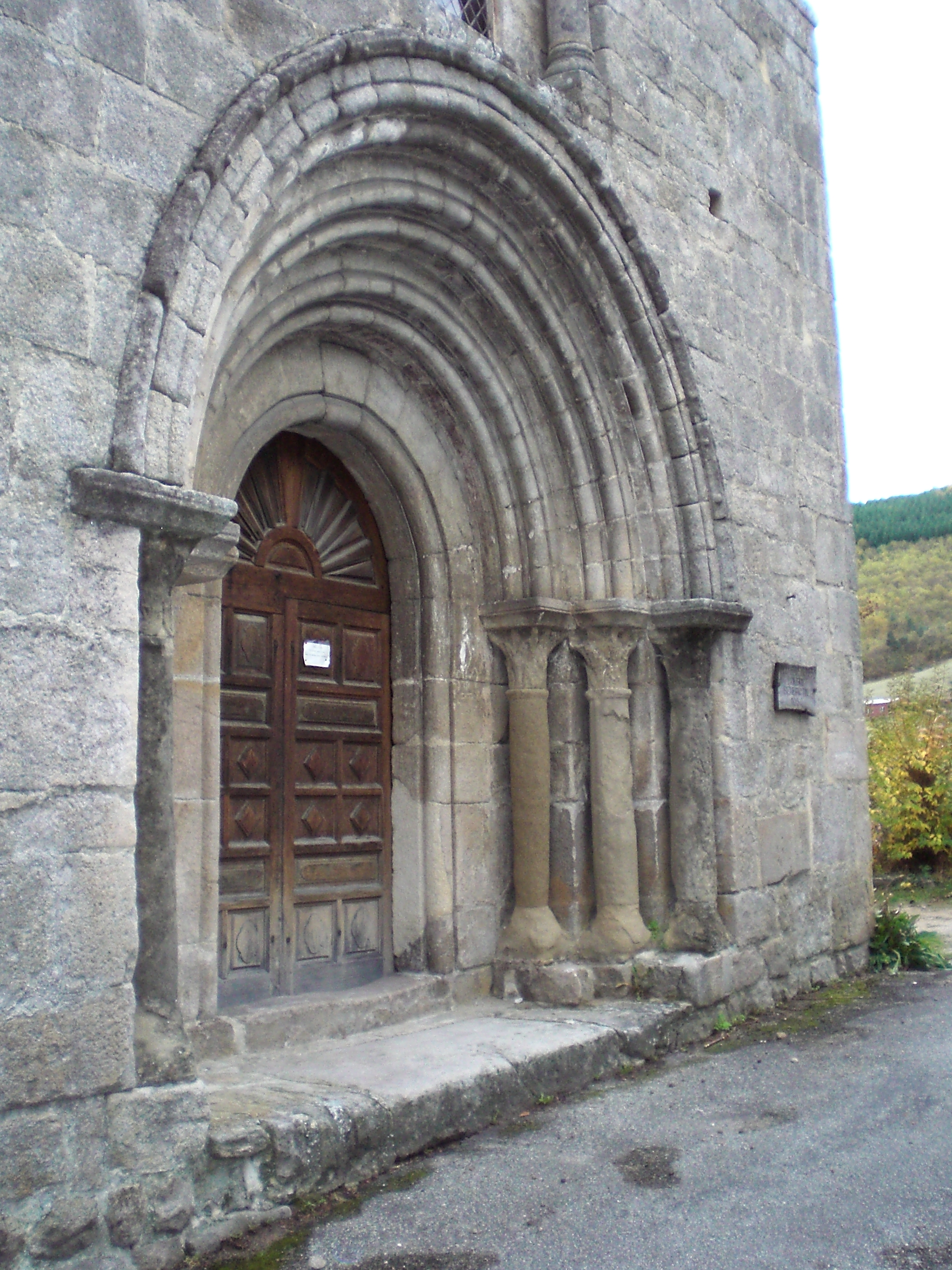 A l’extérieur de l’église c’est la façade reconstruite au XIIème siècle qui retient l’attention avec notamment son portail protégé par une archivolte à triple voussure composée d’une double moulure à ressaut. Les trois archivoltes retombaient à l’origine de part et d’autre du portail sur des tailloirs surmontant des colonnettes en molasse. Ces dernières sont très dégradés, voire ont purement et simplement disparu pour deux d’entre elles.