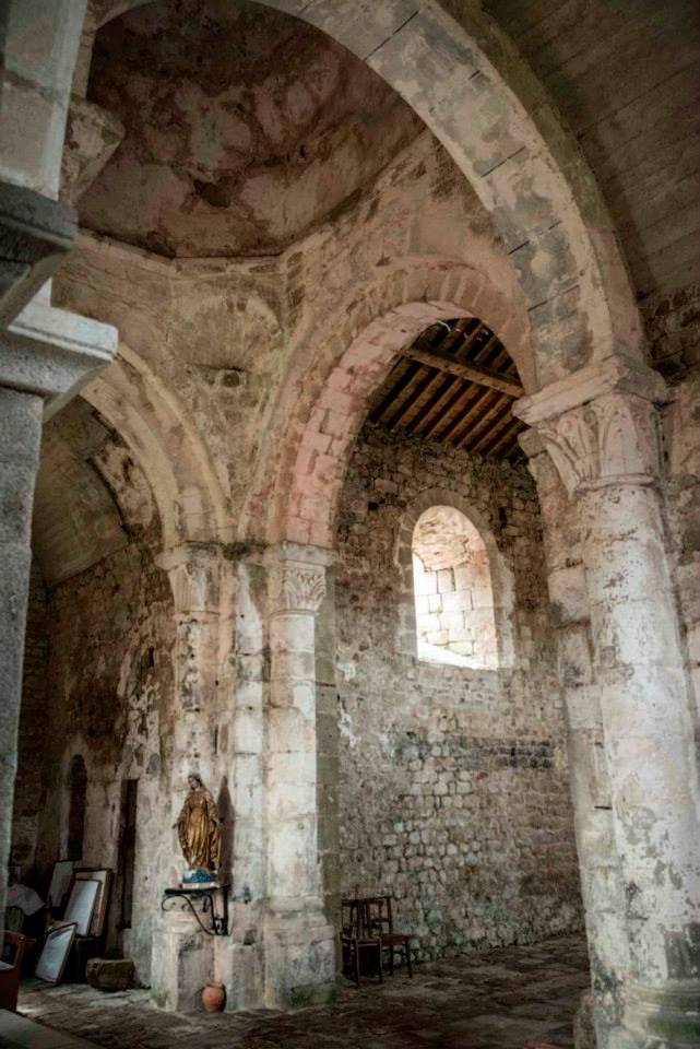 Il ne reste de l’époque médiévale que des traces d’un enduit badigeonné de blanc et d’une peinture rouge sur les ébrasements et les encadrements des baies ainsi que sur les plinthes des murs du transept. A ce décor initial a été rajouté ultérieurement un badigeon rouge sang soulignant les éléments architecturaux : piliers, colonnes, arcs de la croisée du transept…