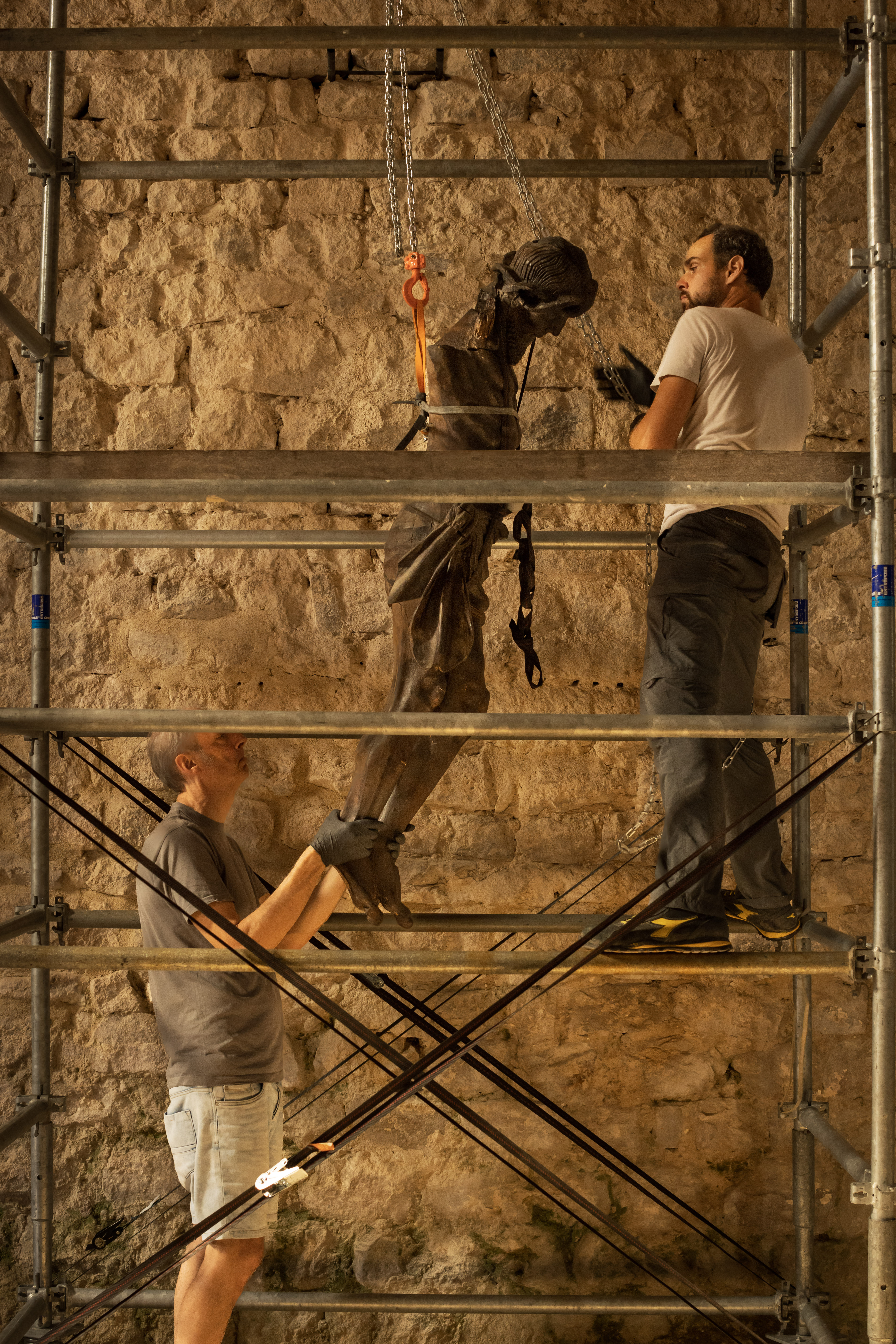 Les restaurateurs d’oeuvres d’art Clément Delhomme et Paul Bosland ont ensuite pris le relais pour réaliser ces différentes interventions dans des conditions optimales durant l’été 2023.