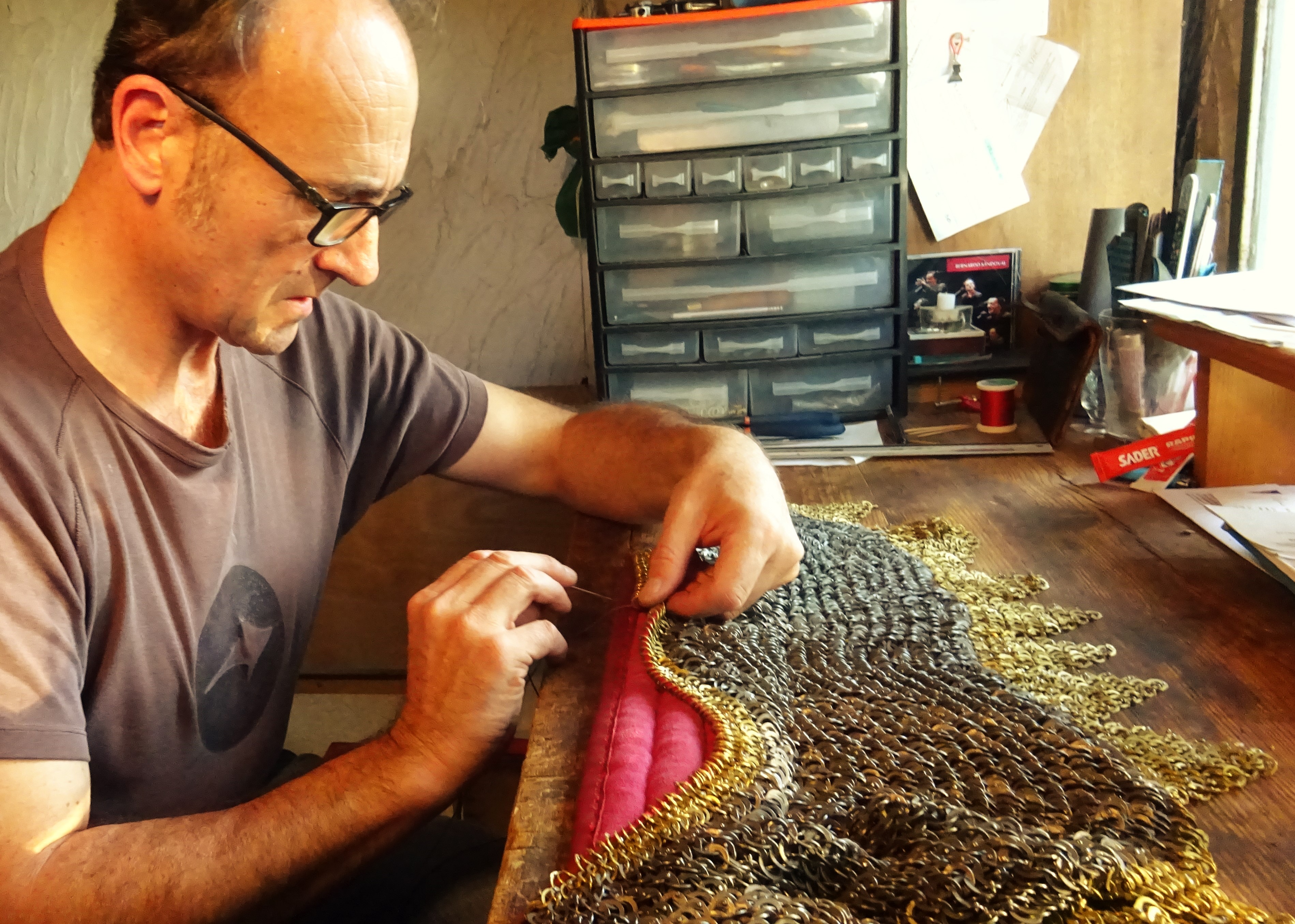 Après une phase de sélection de candidats par les Amis de Veyrines, une phase de présentation sur site de leur future activité durant le printemps 2022 a été organisée pour les trois candidats finalistes. Un artisan d’histoire pratiquant le métier médiéval d’haubergier a été choisi à l’unanimité par le conseil d’administration des Amis de Veyrines. En effet outre l’originalité de sa profession, l’adéquation avec la période de création et d’existence du prieuré de Veyrines (XIème-XIVème siècle), nous est apparue immédiatement. En conséquence Peter Krause est venu s’installer en juin de la même année dans la maison et la grange de Marcel.