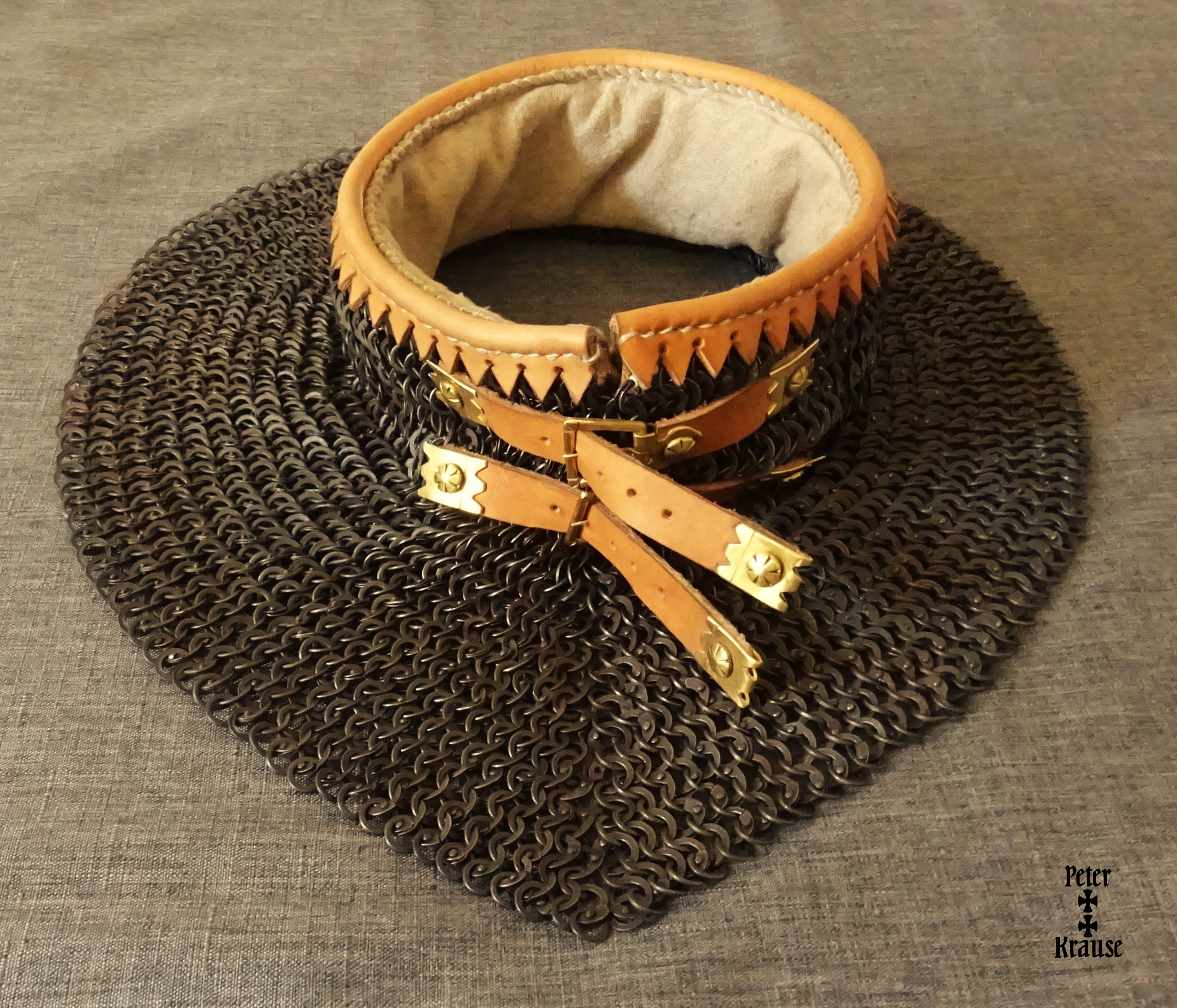 L‘haubergier Peter Krause réalise également des équipements de défense en bois du combattant médiéval tel le bouclier. Enfin il recréé également des objets de la vie civile et religieuse du bas Moyen-Age (cuillères, bijoux, ceintures, lutrins d’église…) en utilisant le bois, le cuir et le métal. Il travaille notamment pour des associations de reconstitution historique de toute l’Europe, en collaboration avec des artisans d’art, des historiens et archéologues spécialistes du Moyen-Age.