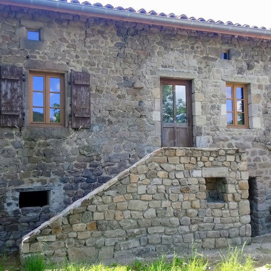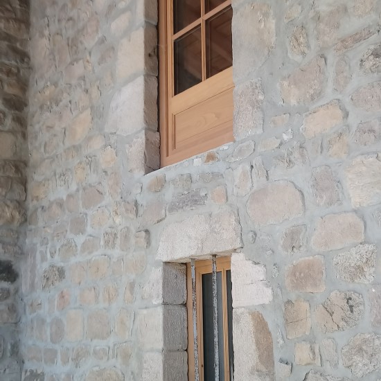 Le chantier a notamment consisté à refaire les encadrements de la porte ainsi que des fenêtres de la façade nord. Les maçons ont également reconstruit les escaliers qui donnent accès à à la maison sur cette même façade nord.