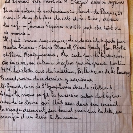 4 mars 20208 mars 2025 Foulques Pagan de Mahun L’enterrement du dernier curé de Veyrines… par Jacques Mouly